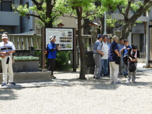 - なんば八坂神社にて担当の二井田さんより挨拶