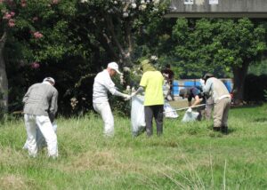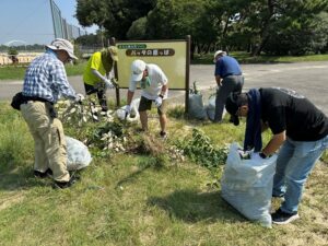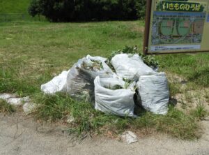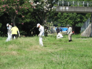 棒立ちの外来植物撤去・楠周りの雑木撤去・本多様草刈り機伐採の雑草除去など