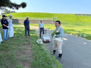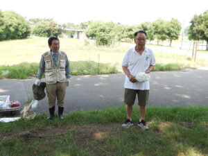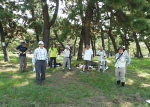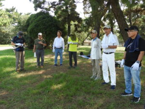 - 本日の作業の説明頂く浜寺公園自然の会の本多さん