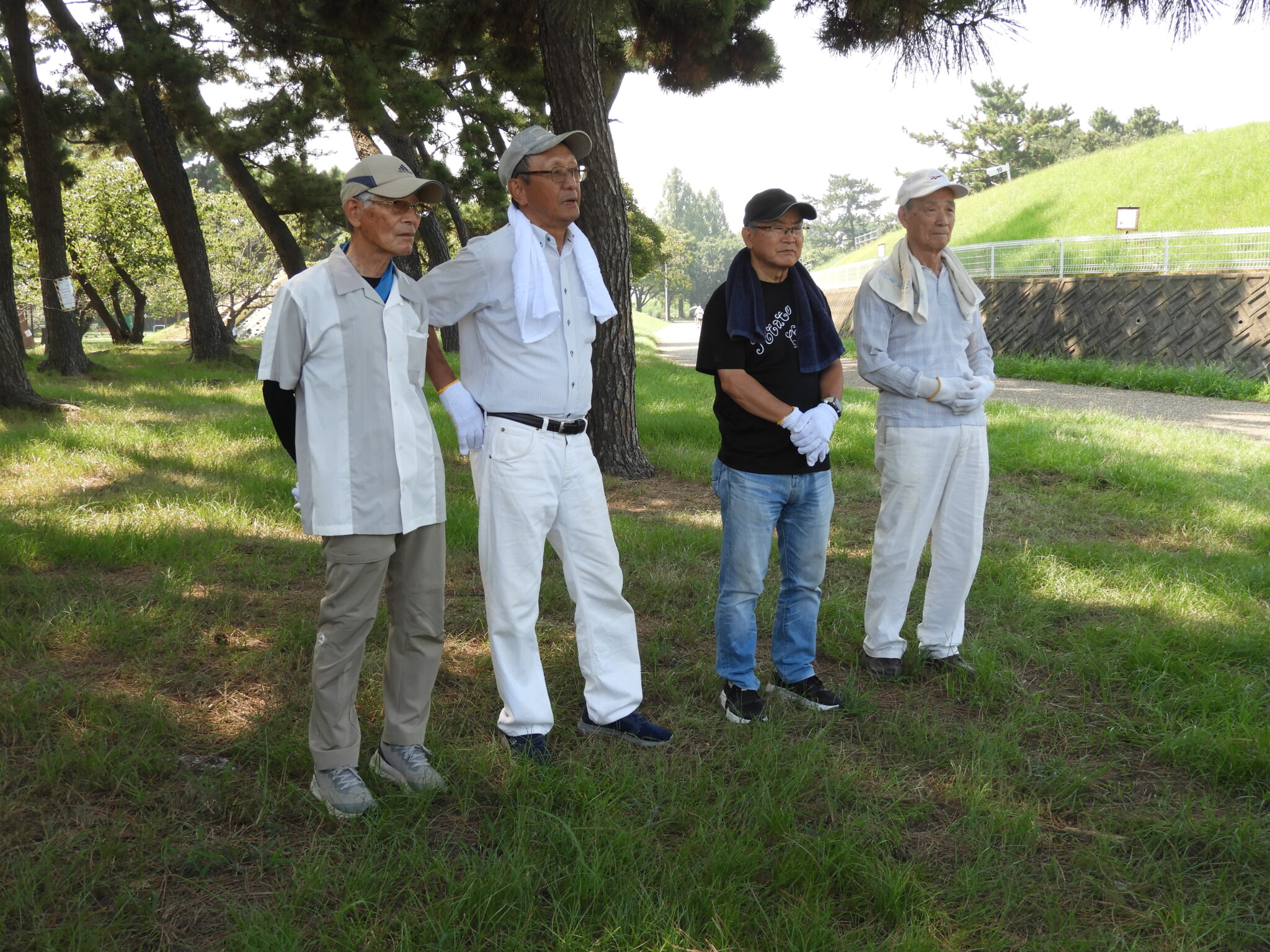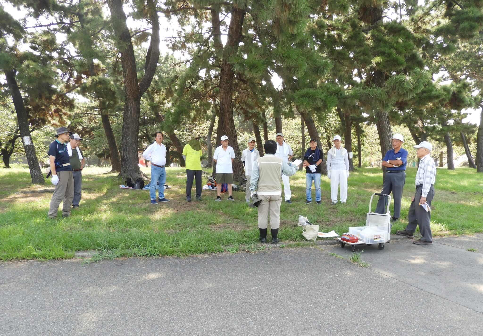 - 本日の作業の説明頂く浜寺公園自然の会の本多さん