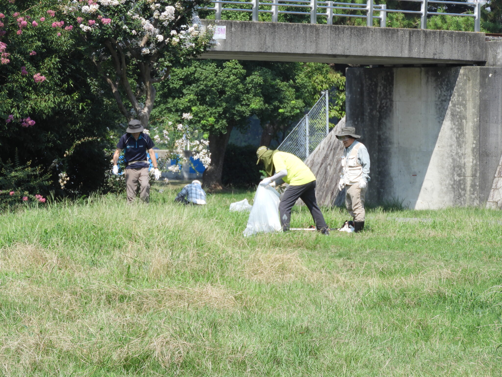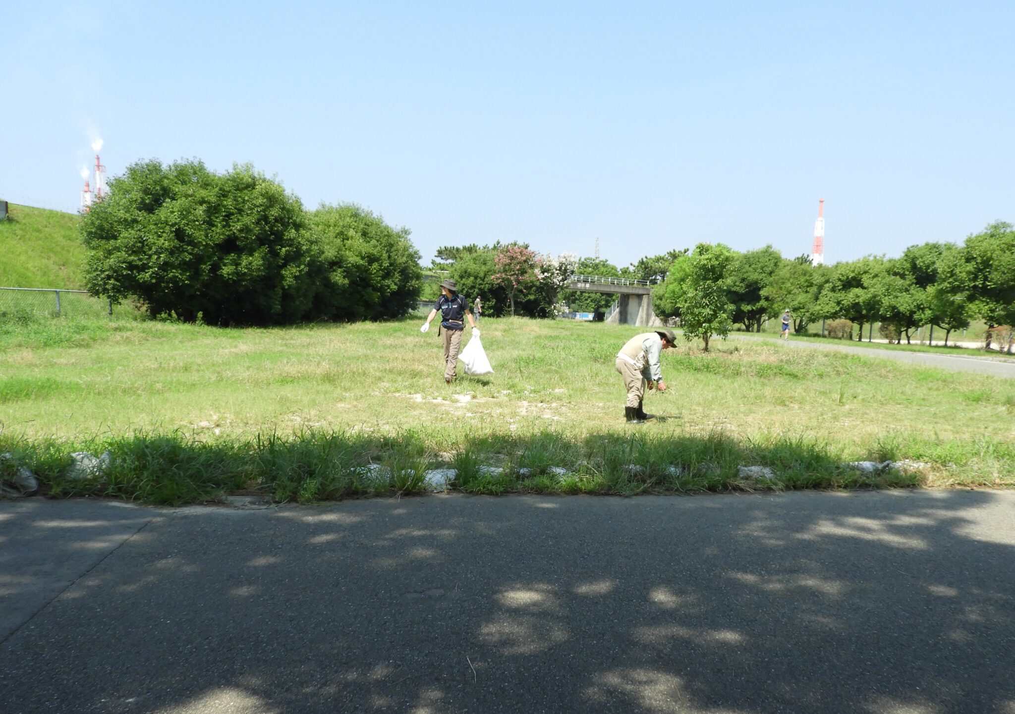 棒立ちの外来植物撤去・楠周りの雑木撤去・本多様草刈り機伐採の雑草除去など