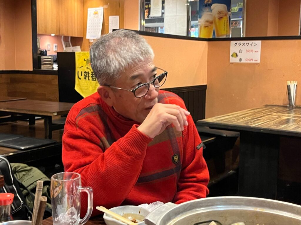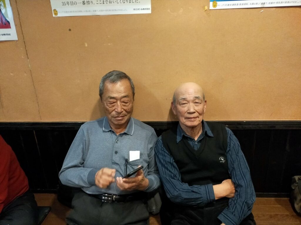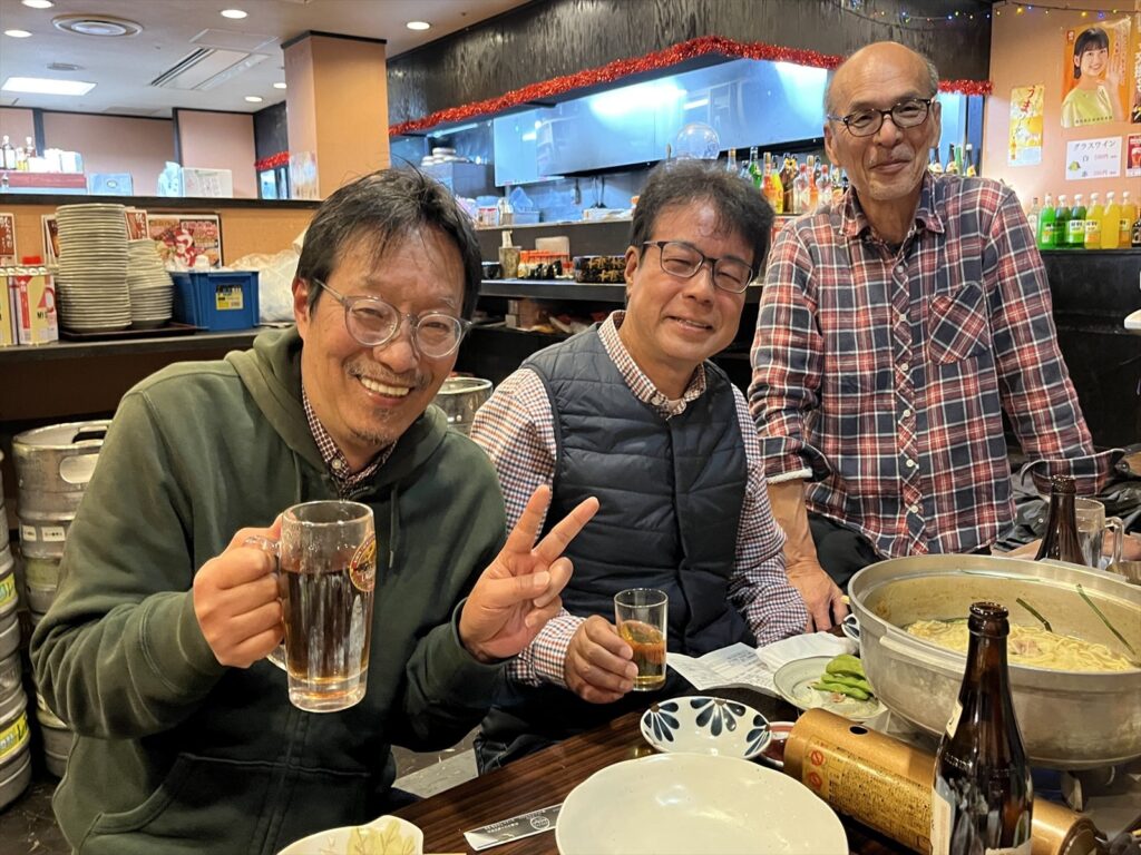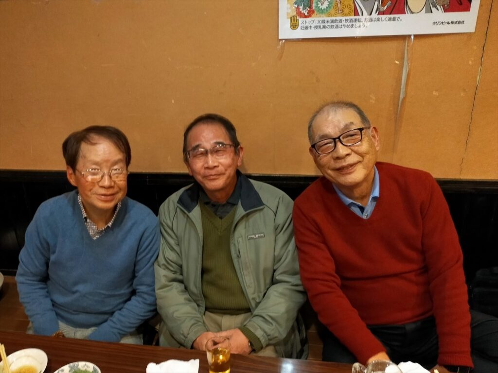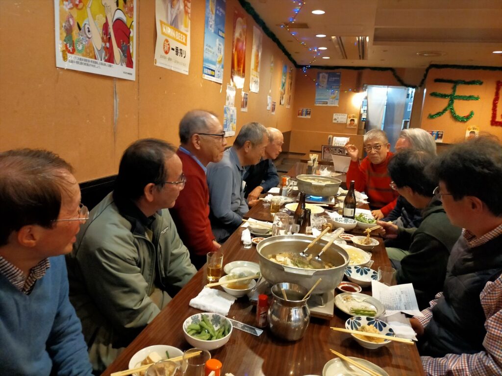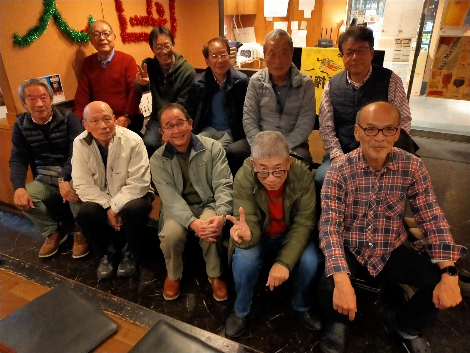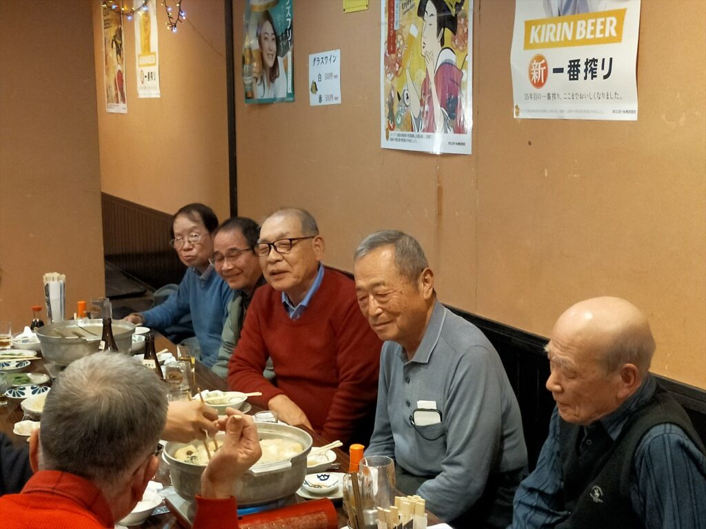 - 夏の懇親会を中止し 冬の忘年会を開催今までの参加構成が大きく変わり、80歳以上1名50歳代1名(平均70歳)