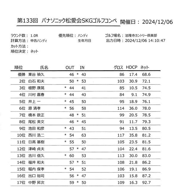 ①第133回SKGゴルフは、奈良県生駒郡の法隆寺カントリ-倶楽部で開催しました。
