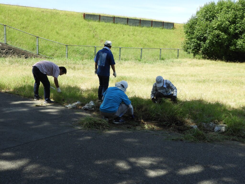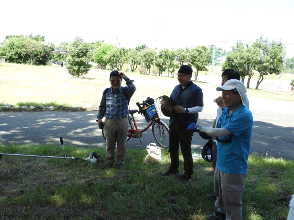 成果の除去雑草を前に記念撮影 本多様 多田支部長に挨拶いただき散会