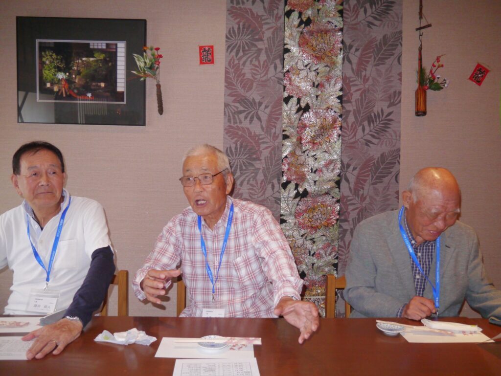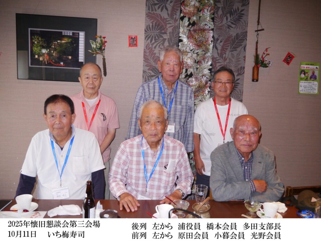 ・今回懐旧懇談会の会場別参加者状況と、第三会場が会員参加4人で一番少なく、支部長挨拶と乾杯を実施
