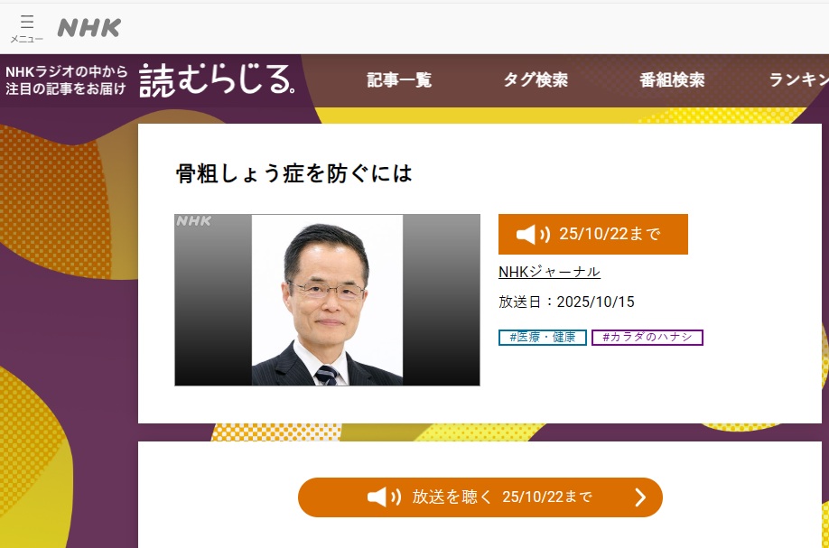 NHK 『読むらじる』 骨粗しょう症を防ぐにはの
