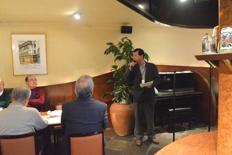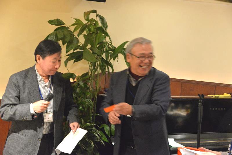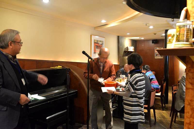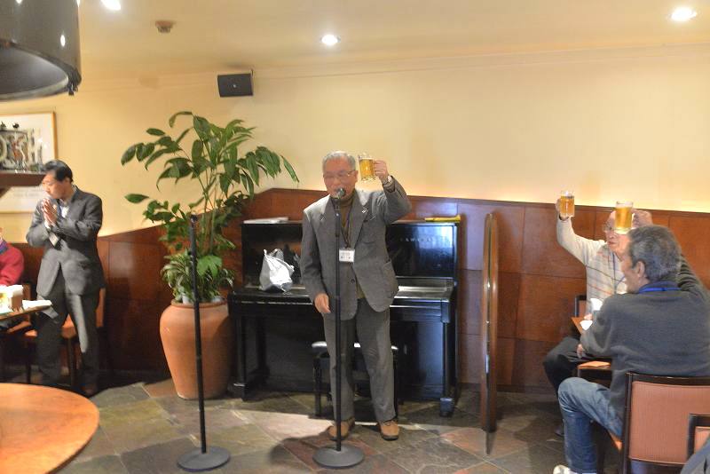 楽しい時間はあっという間に過ぎ、気が付くといつの間にかお開きの時間を迎えていました。今年はパソコン同好会の森会長に、本日ご出席いただいた方のご健勝と同好会及び支部の今後の益々の発展を祈って、一丁締めで中じめ頂いてお開きといたしました。