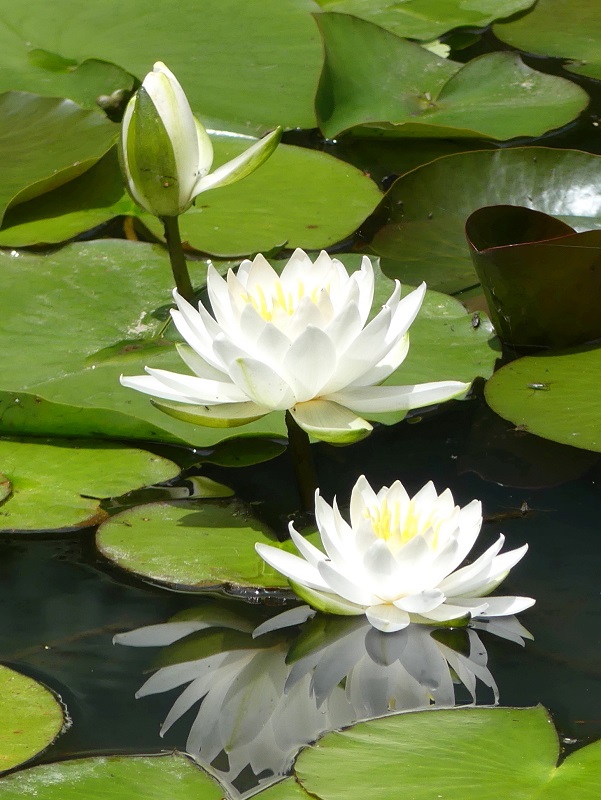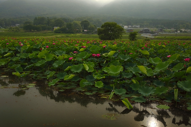 「水面に写るハス」