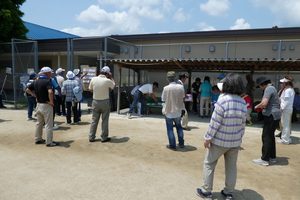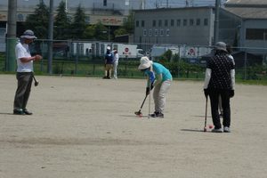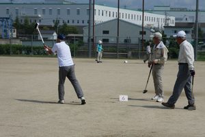 熱中対策として、ゲーム毎の合間に水分補給を取り入れ、全員が30度を超すグランドで無事プレーを行う事が出来ました。 過去3回の定例競技会成績でハンディキャップを付与し、熱戦を戦い抜いた結果、ホ-ルイン・ワンを5個ゲットし、68のスコアで佐貫章夫さんが、見事に優勝されました。