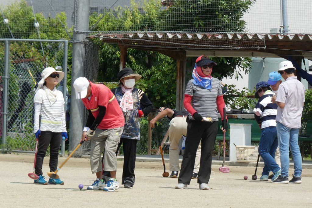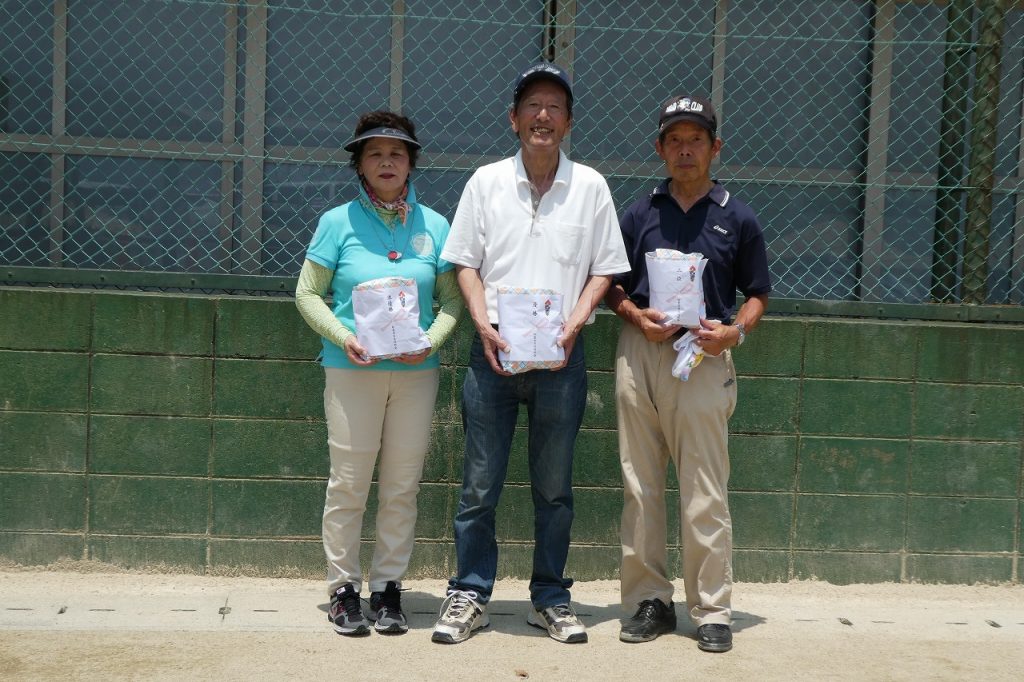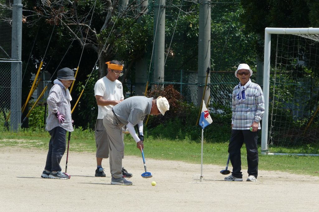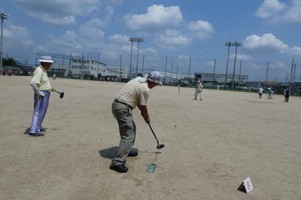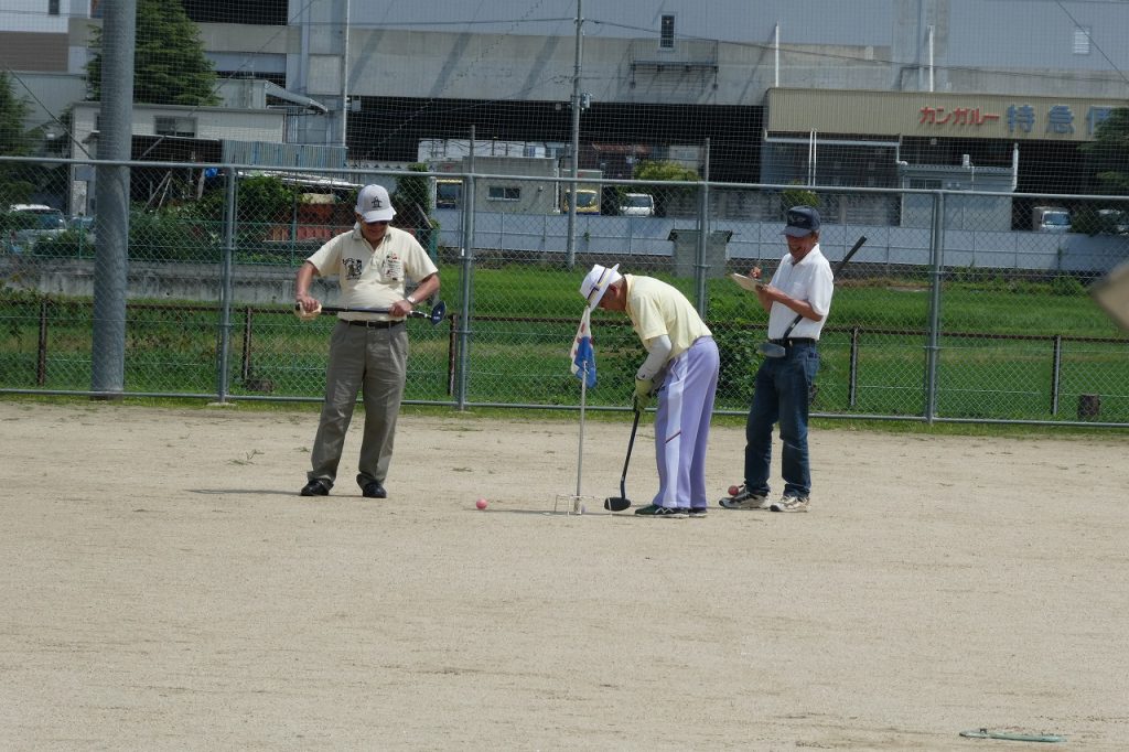 熱中対策として、ゲーム毎の合間に水分補給を取り入れ、全員が30度を超すグランドで無事プレーを行う事が出来ました。 過去3回の定例競技会成績でハンディキャップを付与し、熱戦を戦い抜いた結果、ホ-ルイン・ワンを5個ゲットし、68のスコアで佐貫章夫さんが、見事に優勝されました。