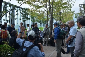 まずはJR天王寺駅中央改札に集合後、あべのハルカスを望む広場で集合写真の撮影です。