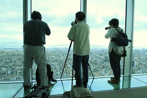 ハルカス16階へ移動し、地上300mの展望台へ行く人・地上に戻る人に別れて撮影開始です。
