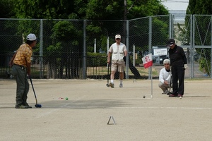 今年のGG交流会は、長岡京スポーツセンターのグランドで、8H×2コ-スを青コ-ス・赤コ-スに分け、合計32ホ-ルの個人戦を行いました。