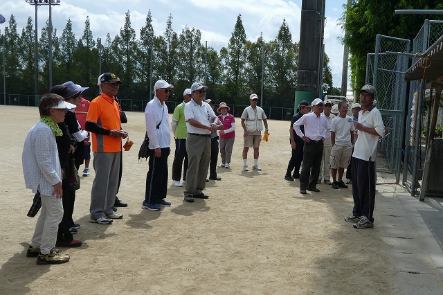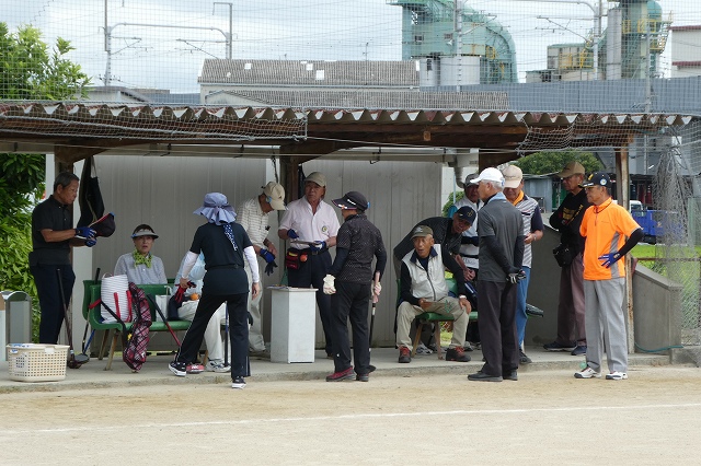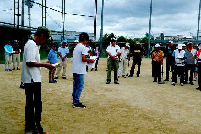 当日の天気は、朝から太陽が眩しく照り付けていました。グランドは、マズマズのコンディションでしたが、皆さんは、初めてのコース設定に苦戦されていました。1年ぶりの友との再会を分かち合い、一緒に挑戦し、笑顔でプレ-し、大変元気に楽しんで頂きました。
