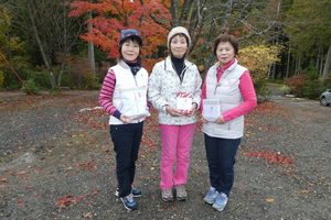 女子の部は、夜久さんがホ-ルインワン4個のトータル133のスコアの優勝でした。男子の部は、山田さんがホ-ルインワン2個のトータル144のスコアで優勝されました。「おめでとう御座いました。」
