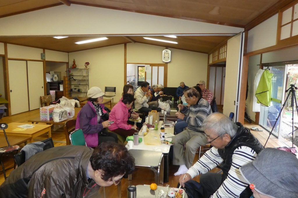 集合時、天候は曇り空の中、秋季日帰遠征親睦大会を決行しました。現地までは、亀岡小型交通の送迎バスで行きました。競技は時折り小雨が降る寒い中でのプレ-でした。他の団体さんが大勢いる中、男女2人ずつ4人を1チームとし5組に分け、8ホ-ル×7ラウンドで競技を行いました。午前は4ラウンド、途中、休憩・昼食を挿み、午後から3ラウンドを行いました。各リ-ダ-の指示に従いトラブルもなく無事にラウンドを終了することが出来ました。