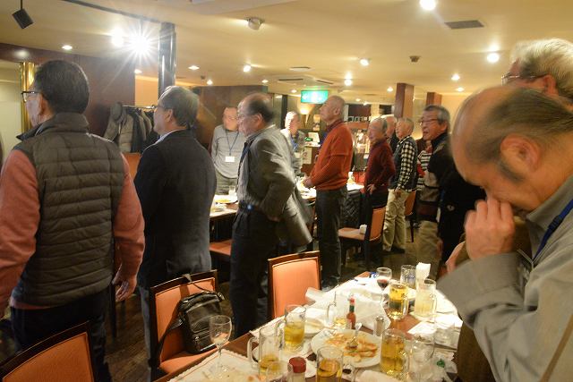 永田支部長からの挨拶の後、麻雀同好会会長の杉村光照さんのご発声で乾杯をし、宴をスタートしました。