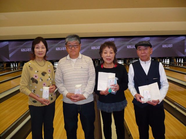 成績結果は、上位には、やはり常連組が実力を発揮され、1位に、美濃井さんが560点、2位に関口さん、3位に松井さんが入られました。ハイゲームは関口さんが215点で獲得されました。女性の上位では1位に森岡さんが486点で、2位に浜崎さん、3位に川島さんと健闘され、森岡さんが、206点を出されるもハイゲームを逃されました。今回の例会で、3ゲームスクラッチ、トータル500点UPを美濃井さん、関口さん、松井さん、遠藤さん、松本さん、田中さんの6名の方が達成されました。