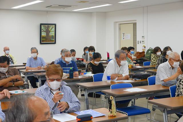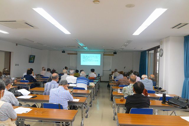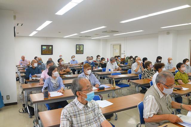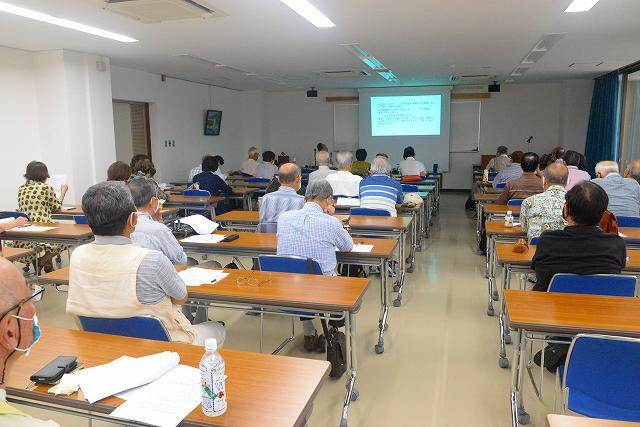 コロナ禍の影響で、3月と5月の例会が中止・延期となったため、1月以来の開催となりました。コロナ対策を十分にして会員38名が出席しました。