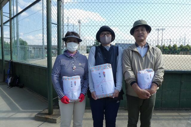 - 第20回創部記念大会成績結果 左から(2位)山本輝美さん、(優勝)森岡早苗さん、(3位)高橋睦夫さん