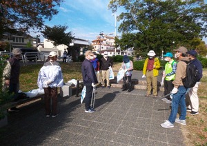 11月1日(日)に「鴨川クリーンハイク」を実施しました、これはボランテイア団体”鴨川を美しくする会”の呼び掛けの趣旨に賛同し、私ども京都支部は社会貢献活動の一環として鴨川美化活動に参加しています、春は新型コロナ感染防止のため参加出来ませんでしたが、秋の今回は京都支部も参加することになり22名の会員さんに参加頂きました。20名を超えたのは久しぶりで、厚く御礼申し上げます。当日は天候に恵まれて絶好のクリーンハイク日和となり、全体では家族連れ、企業や大学のグループなど約250名が清掃活動に取り組みました、今回は初めて西脇京都府知事も参加されました。