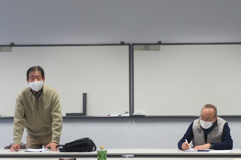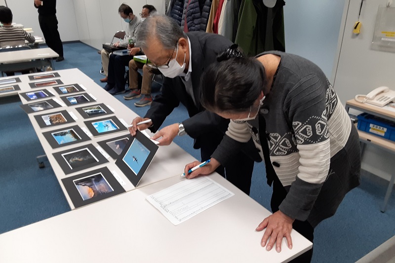 11月12日(木)長岡京バンビオ4階学習室で11月度例会を会員18名が出席して開催しました。 入り口での手の消毒・検温を実施し、窓・入り口を開放して万全の対策で密を避けて開催しました。「新型コロナウイルスは第三波が到来しそうな雰囲気です。いろいろ規制が掛かることも予測されますが、各自で予防しながら写真撮影にお出かけください。」との北村会長の挨拶でスタ-トしました。