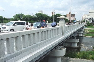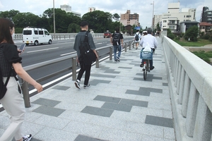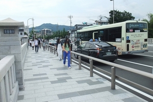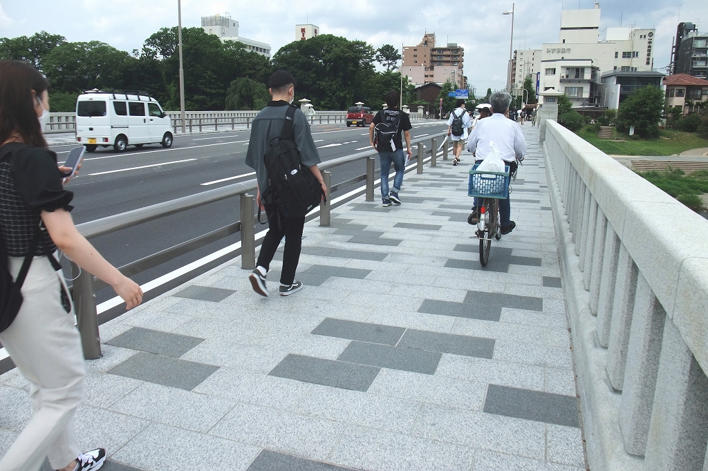 - 駅の上、賀茂大橋では若い方の通行が目立ちます!