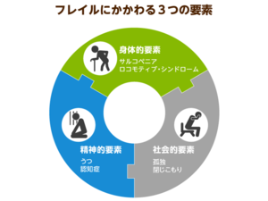 東京大学高齢社会総合研究機構の研究では、フレイルは3つの要素で構成されていることが明らかにされています。