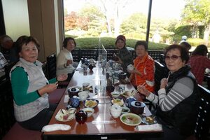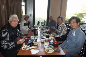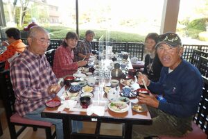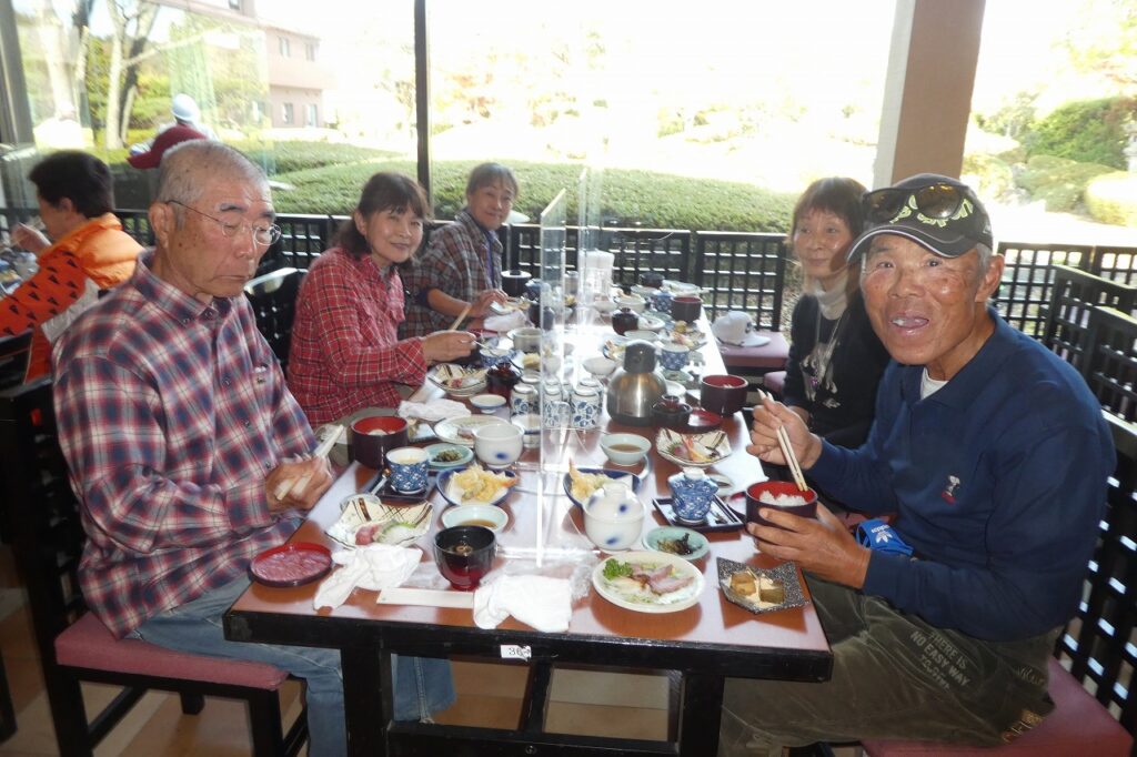 - 昼食の時間です。(バスの旅から解放され皆さん楽しそう。)