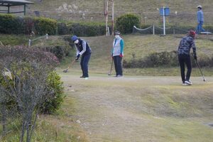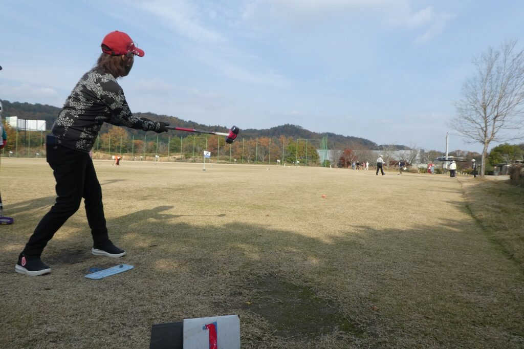 遠征地の大和高原ボスコヴィラ(奈良市)は標高が450mと高く、気温が4~5℃低いですが、当日は秋晴れの天気と皆さんの熱気あるプレーで日中は汗ばむような温かさでグラウンドゴルフを楽しむことができました。