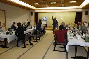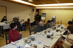新型コロナ感染は収まってはいますが、アルコール消毒、マスクの着用、大声での会話等を控え、座席の距離をとりながら、1日目の反省や日常の生活を忘れ、仲間との楽しい会話に盛り上がりました。