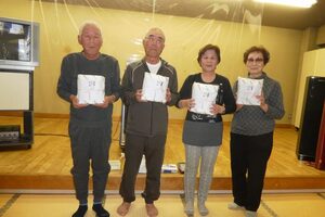 - 団体戦優勝の皆さん、左から 山田さん、長谷川さん、山本(輝)さん、藤井さん