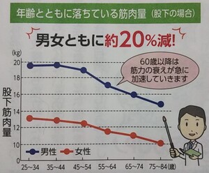 年齢と共に筋肉量は減り、60歳ではピーク時の約20%も減少します。コロナ禍で自粛生活ことも筋力低下を加速させます。筋肉の量が減少すると、転倒したり、病気にかかったりするリスクが増えます筋肉量が多いほど長生きできることもわかってきました。足には体全体の筋肉量の60%~70%が集中しています。その為、筋力アップにはウォーキングや足の運動が効果的です・特に「第二の心臓」と呼ばれるふくらはぎと同様に足先から心臓に戻る血液を送り出す太ももの筋肉を鍛えると、冷え症の改善に効果的です。くれぐれも無理せず、関節のケアも並行して行いましょう。