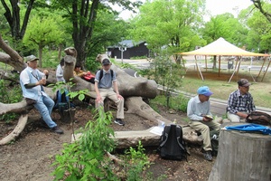 - 予想に反して強い日差しとなり、木蔭で小休憩中!