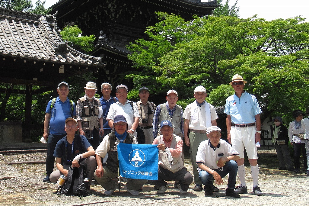 - 真如堂三重塔前での記念撮影①!(塔に接近し過ぎ映らない)