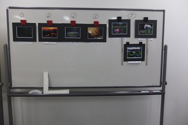 互選会は撮影会作品「万博記念公園」と自由作品を各自2作品づつ出展しました。撮影会作品の部・自由作品の部ともに1席から5席までを選びました。撮影会の部は1席から3席まで8作品が選ばれる混戦になりました。入選作品は撮影者が作品を紹介し、選者がその作品の感想を述べました。今月はコメンタ-が不在の為、その後各人が自分の作品を紹介し、参加者からその作品についての感想やアドバイスを受けました。