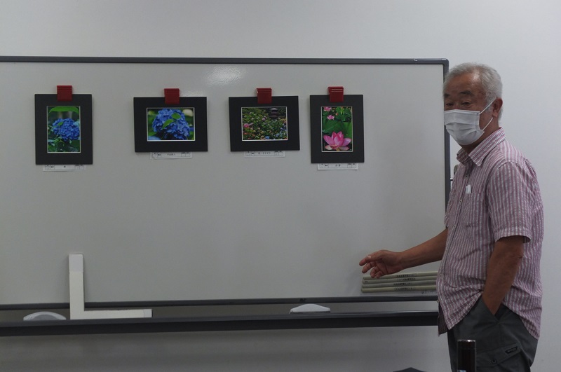 7月14日(木)長岡京市バンビオ6階創作室1に於いて会員14名が出席して開催しました。今月も全員マスク着用の上、手指の消毒・体温測定・換気を励行して開催しました。北村会長の挨拶でスタ-トし、互選会・今後の撮影会についての検討を行い、諸連絡の後閉会しました。