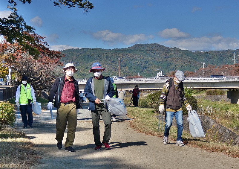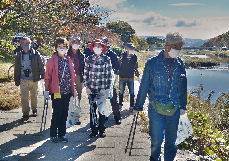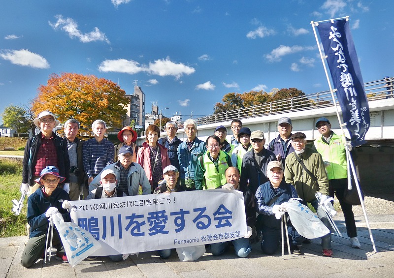 パナソニック松愛会京都支部では春と秋の2回、この「鴨川クリーンハイク」に有志で参加しています。今回は11月6日(日)に初めて参加する5名を含め21名の参加でした。主催者の発表によると、当日の参加者は約350名でした。
