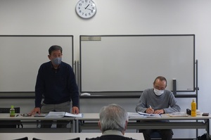1月12日(木)長岡京市バンビオ6階創作室1に於いて会員15名が出席して開催しました。今月も全員マスク着用の上、手指の消毒・体温測定・換気を励行して開催しました。北村会長の挨拶でスタ-トしました。その後、互選会・第8回写真展開催についての検討を行い、諸連絡の後閉会しました。