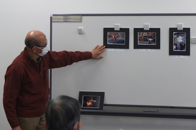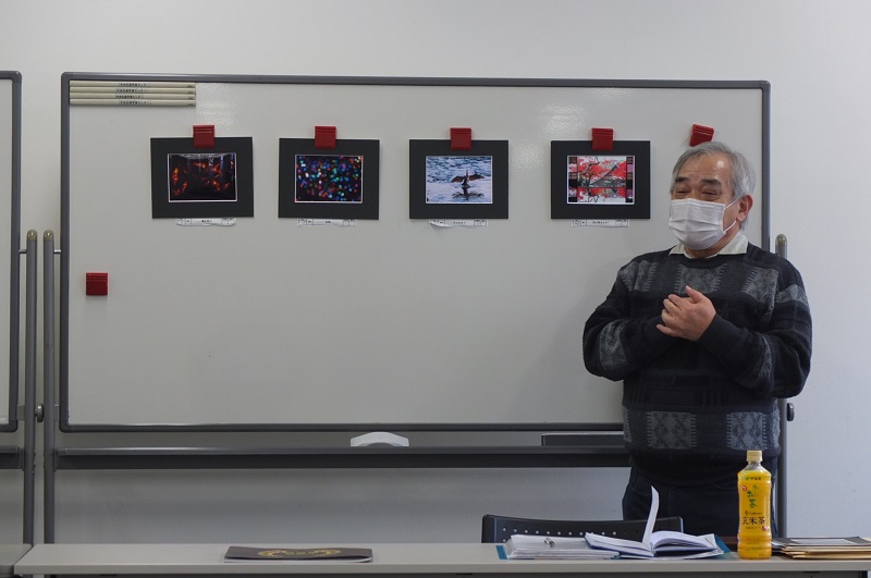 課題作品の部「年末年始の風景」と自由作品を各自2作品づつ出展しました。今月も力作ぞろいで、接戦の末課題作品の部1席から3席で計5作品・自由作品の部で、1席から2席で計5作品が入選しました。今月はコメンタ-が不在の為、入選作品は撮影者が作品を紹介し、選者がその作品について感想や質問を行いました。その後、各人が自分の作品を紹介し他の会員からその作品についての感想やアドバイスを受けました。