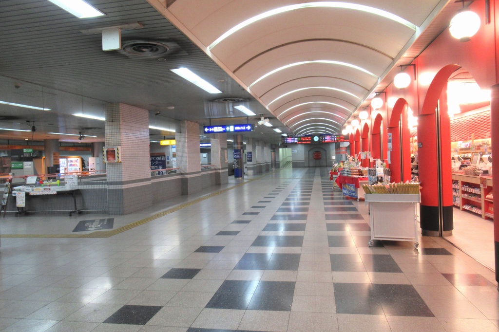 - 京阪三条駅構内AM9:35、雨天の為か人が少ない!