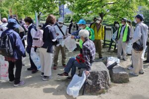 - 初参加の皆さんも談笑しながらゴミ拾い