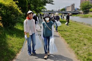 新緑いっぱいで、春たけなわの4月29日「鴨川を美しくする会」の主催で開催された鴨川クリーンハイクに松愛会京都支部も参加しました。