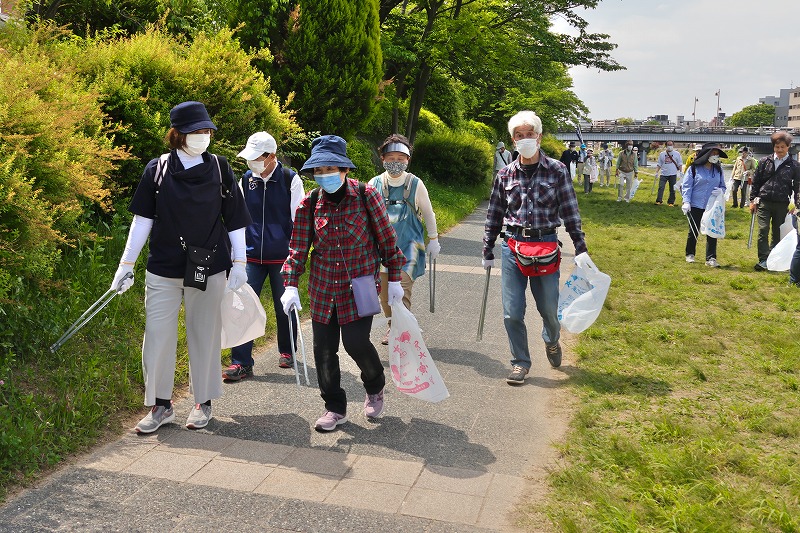 新緑いっぱいで、春たけなわの4月29日「鴨川を美しくする会」の主催で開催された鴨川クリーンハイクに松愛会京都支部も参加しました。