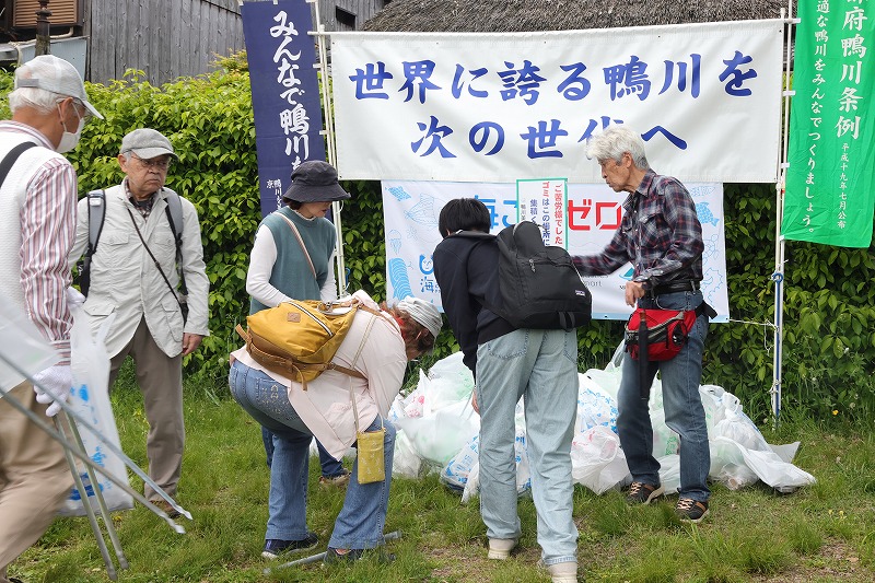 市民の清掃意識の向上などで、落ちているゴミは少量でしたが、空気はキレイで、抜けるような青空と鴨川の清流、のんびりとした鳩などの鳥などを眺めることが出来て、都会の喧騒を忘れて、みなさん癒されておられるようでした。幸いにも、心配された雨は終了時間までに降りませんでした。