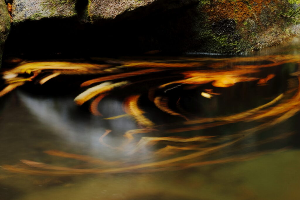 11月24日(金)会員10名が参加し開催しました。あいにく紅葉は盛りを過ぎていましたが滝や川の流れに浮かぶ落葉を狙い作品作りに取り組みました。