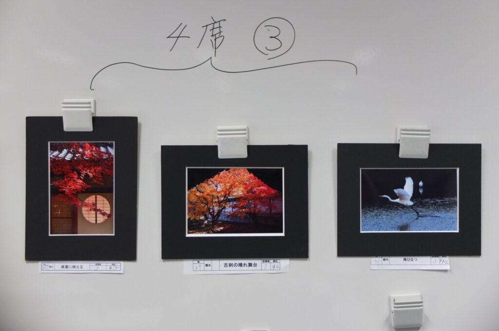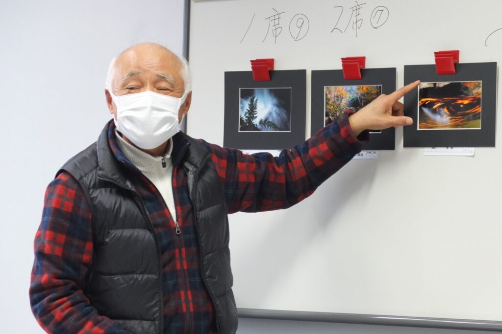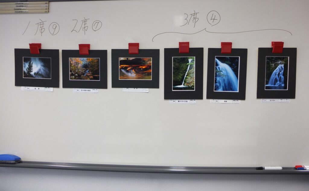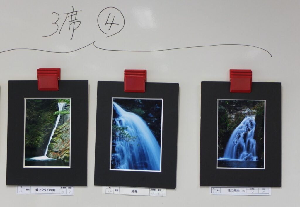 赤目四十八滝で開催した撮影会作品と自由作品を出展しました。今月も力作ぞろいで、撮影会作品の部で1席から3席まで計6作品、自由作品の部で、1席から4席まで計6作品が入選しました。入選作品は撮影者が作品を紹介し、コメンタ-八木さん、福井さんから入選作品についてコメント・アドバイスを受けました。後半は各個人の作品をプレゼンの後、コメンターを指名して寸評と意見をもらいました。