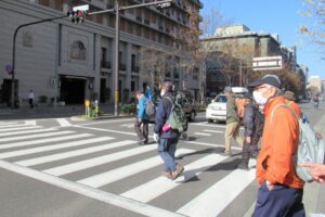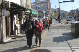 - 京阪地下駅上の五条通沿い朝のミーティング、コースリーダー稲原氏!
