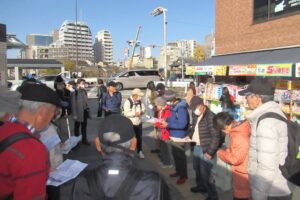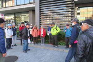 澄み渡った青空、快晴の日ウォーキングです。朝夕の気温差が激しくて体調を崩すこの時期に22名と多くの方に参加頂きました。