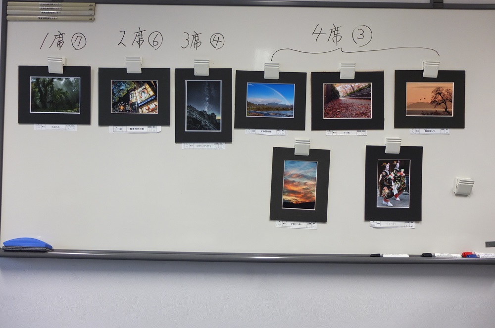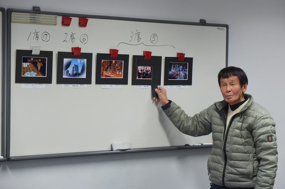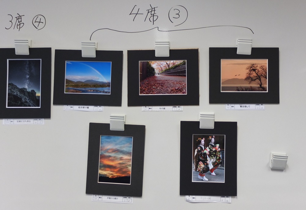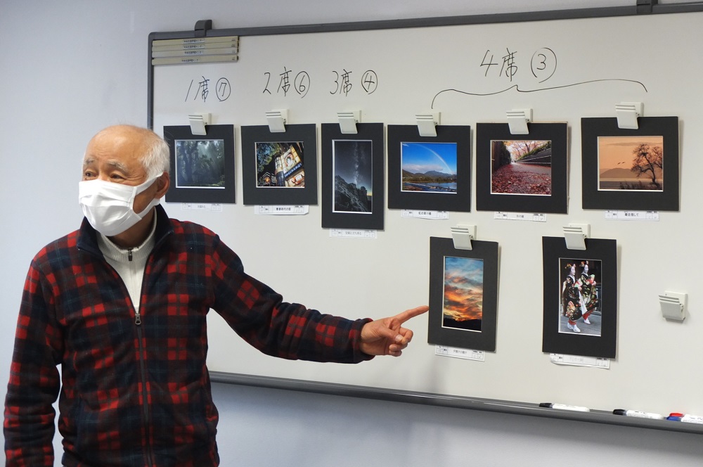 今月も力作ぞろいで、12月22日に実施したミニ撮影会「大阪イルミネーション」及び「年末年始風景」を課題作品とし、2作品。自由作品2作品を並べて、撮影会作品の部で1席から3席まで計5作品、自由作品の部で、1席から4席まで計7作品が入選しました。入選作品は撮影者が作品を紹介し、コメンタ-八木さん、福井さんから入選作品についてコメント・アドバイスを受けました。後半は各個人の作品をプレゼンの後、コメンターを指名して寸評と意見をもらいました。